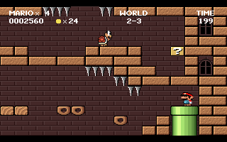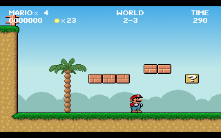 -New level name layout. Instead of ”Level 5" it now displays "World 2-1". The game starts at World 1 and advances to the next world every 4 levels. ( like the original Mario games did)